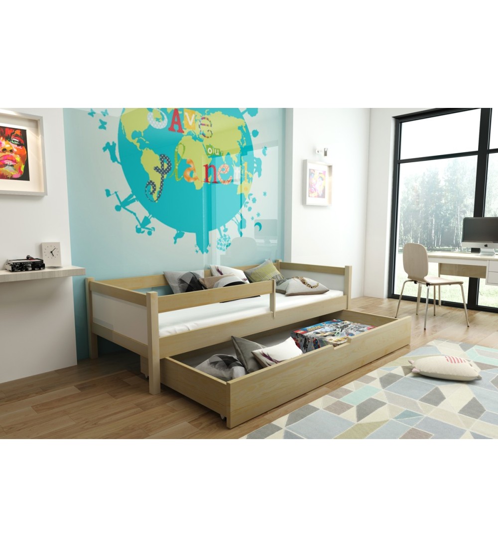 Konstrukce je vyrobena z kvalitního masivního borovicového dřeva, které je známé svou pevností, dlouhou životností a krásnou přírodní kresbou. Povrch je hladce opracovaný a příjemný na dotek, bez ostrých hran – ideální pro děti.