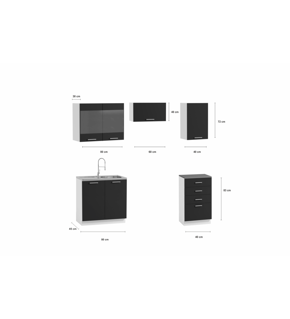 Kuchyně PAULA 180 je jednoduchá, elegantní a moderní sestava kuchyňských skříněk. Tato sestava se skládá z 5 samostatných skříní, které lze libovolně konfigurovat, což poskytuje maximální využitelnost a svobodu uspořádání.