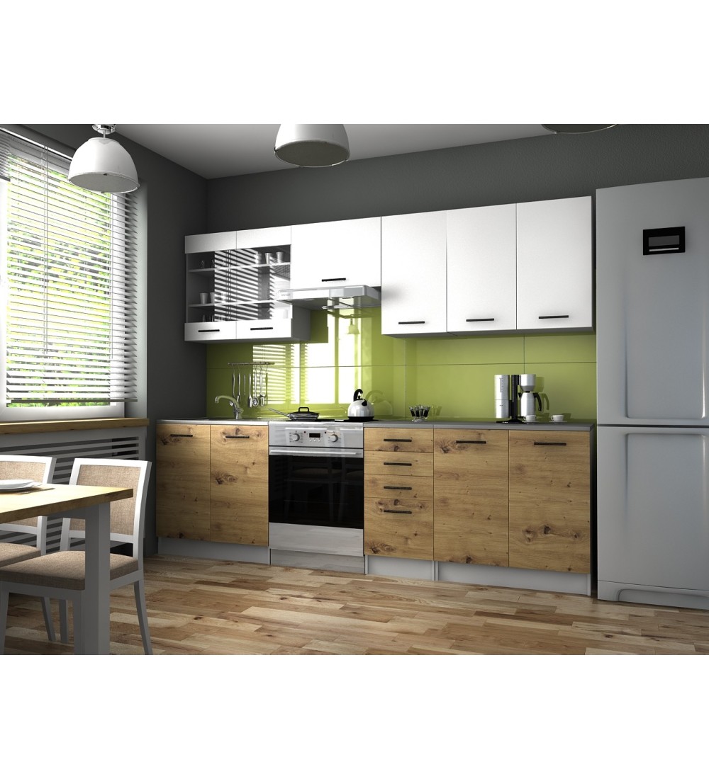 Kuchyňská linka PAULA KLASIK 260/200 bílá + dub artisan