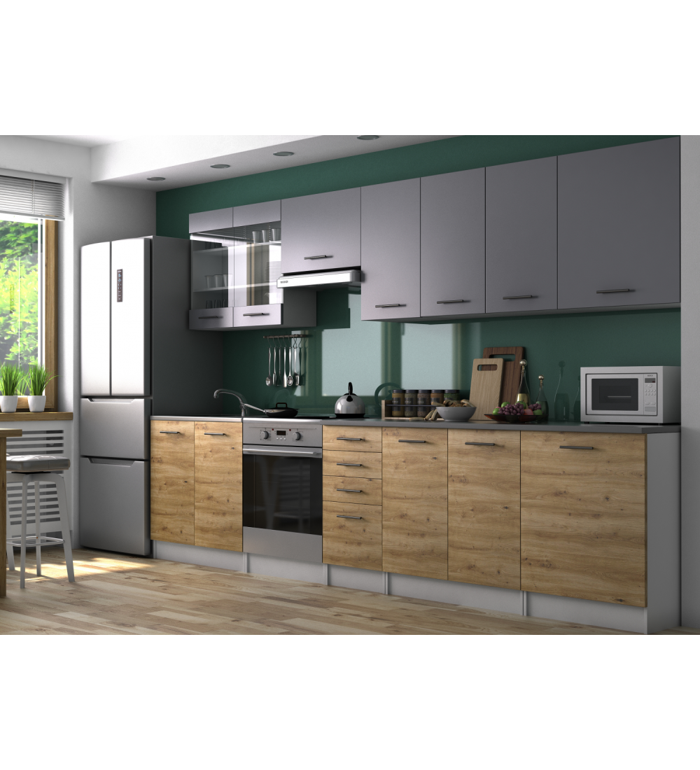 Kuchyňská linka PAULA KLASIK 320/260 šedá + dub artisan