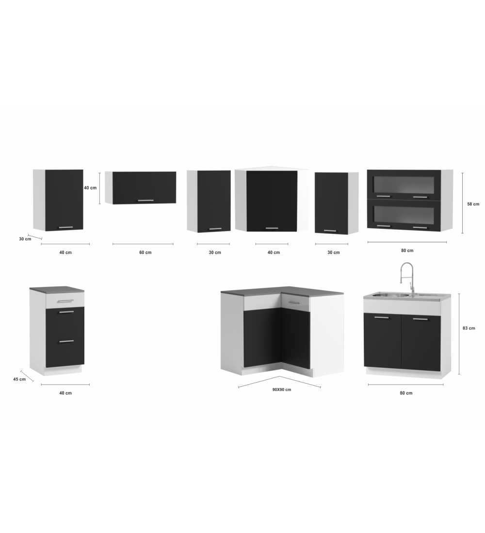• Výška horních skříněk: 58 cm