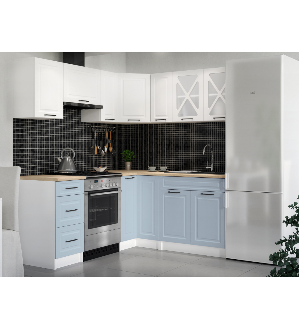 Rohová kuchyňská linka RUMONA SCANDI 190x170cm bílá + světle modrá