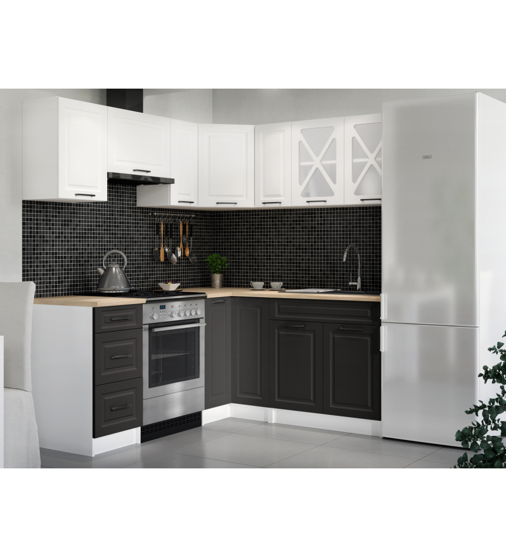 Kuchyně RUMONA je jednoduchá, elegantní a zároveň moderní sestava rohových kuchyňských skříněk, vyrobená ve velmi oblíbeném skandinávském stylu. Tato sestava se skládá z 9 samostatných skříní, které lze libovolně konfigurovat, což poskytuje maximální využitelnost a svobodu uspořádání.