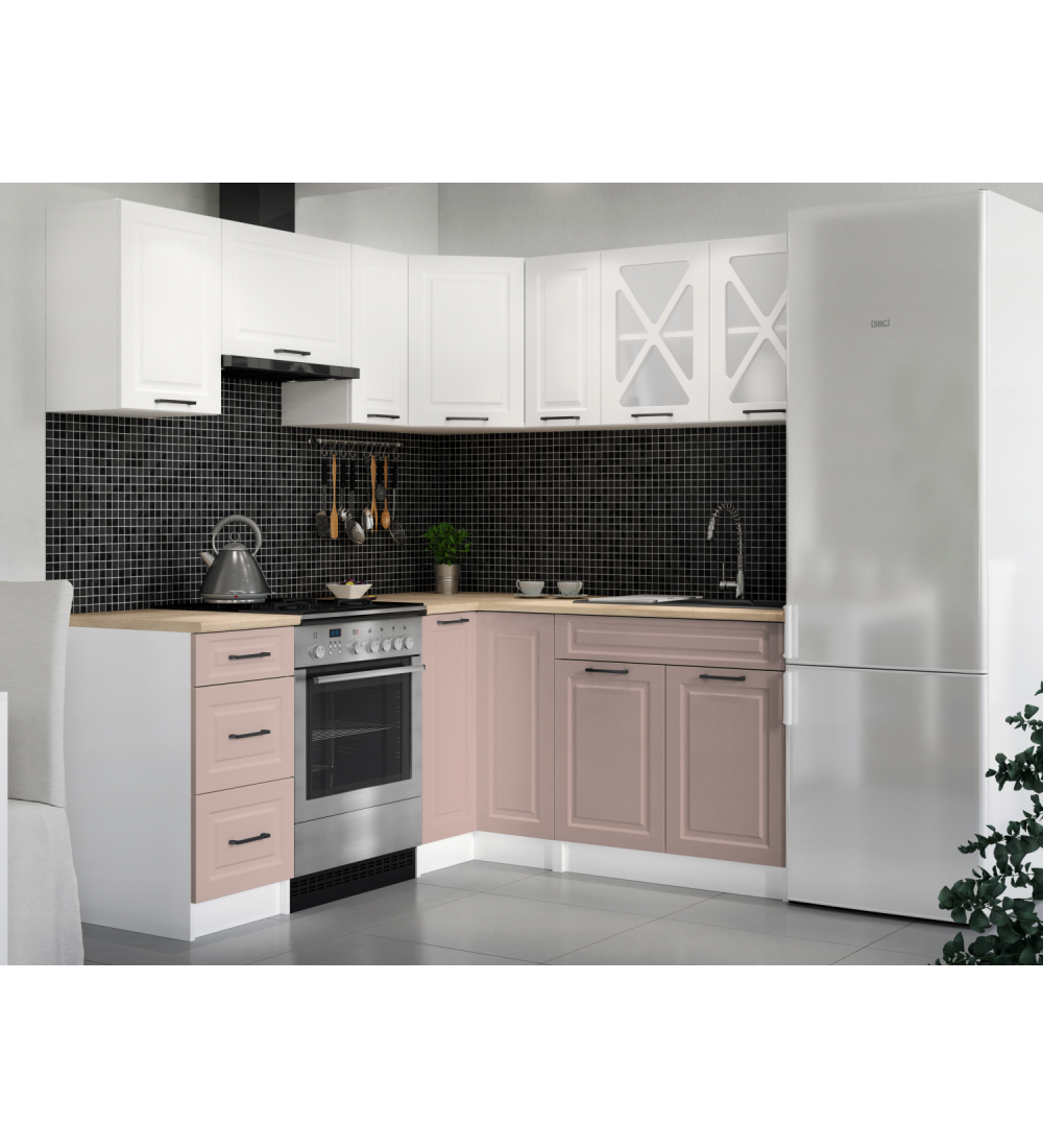 Rohová kuchyňská linka RUMONA SCANDI 190x170cm bílá + růžově béžová