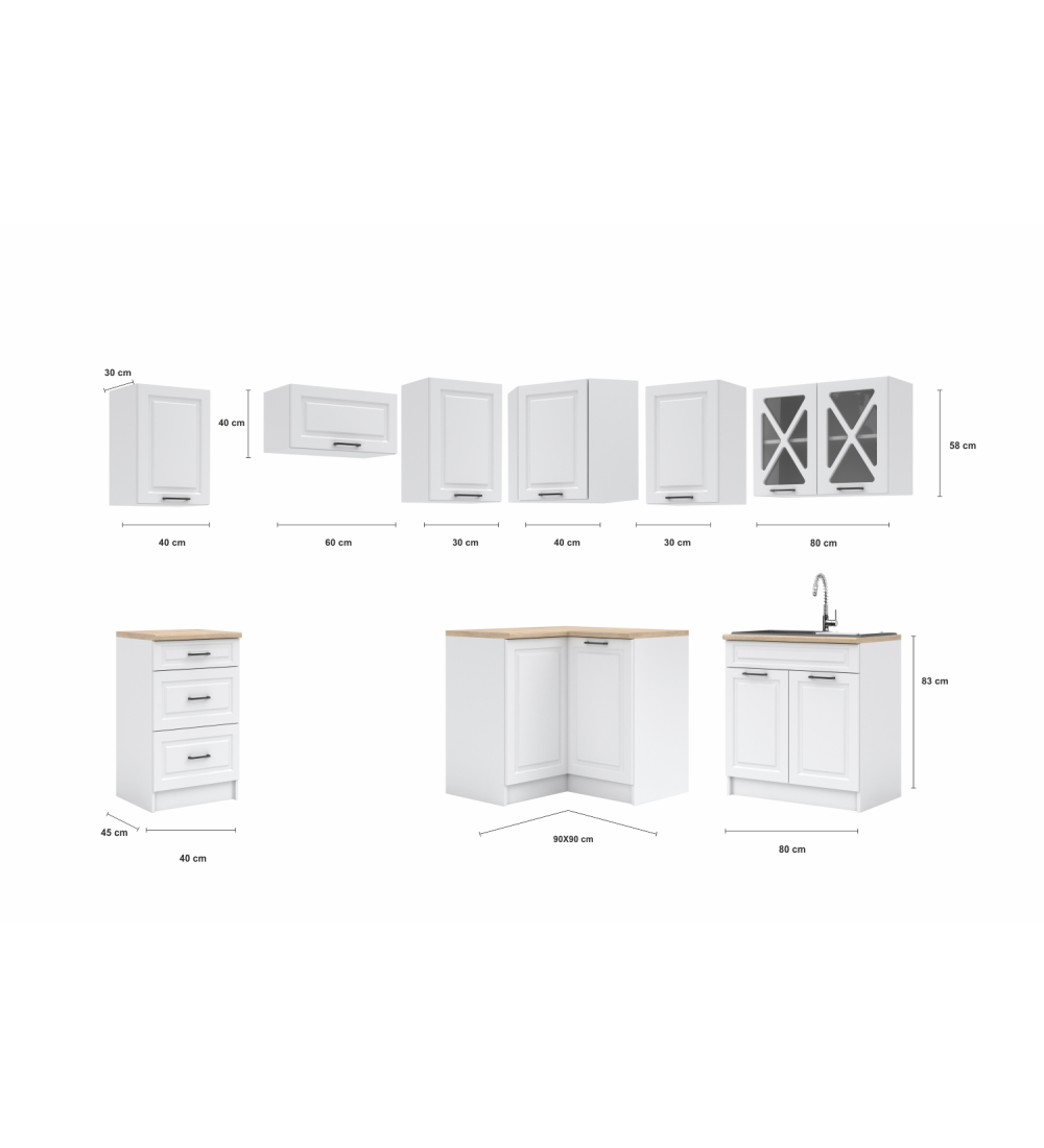 - Rohová (90/90) (3 samostatné skříňky)