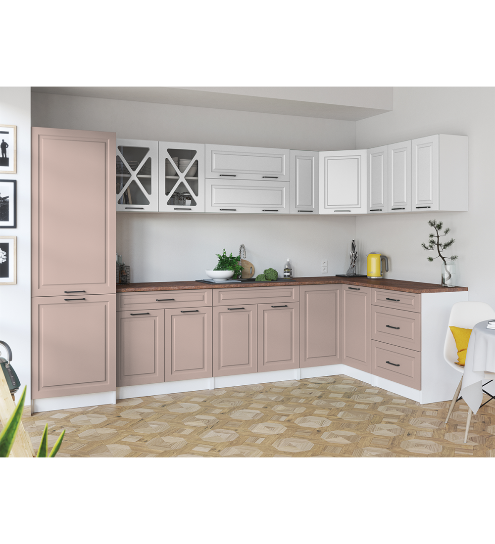 Rohová kuchyňská linka EROS SCANDI 310/150 bílá + růžově béžová