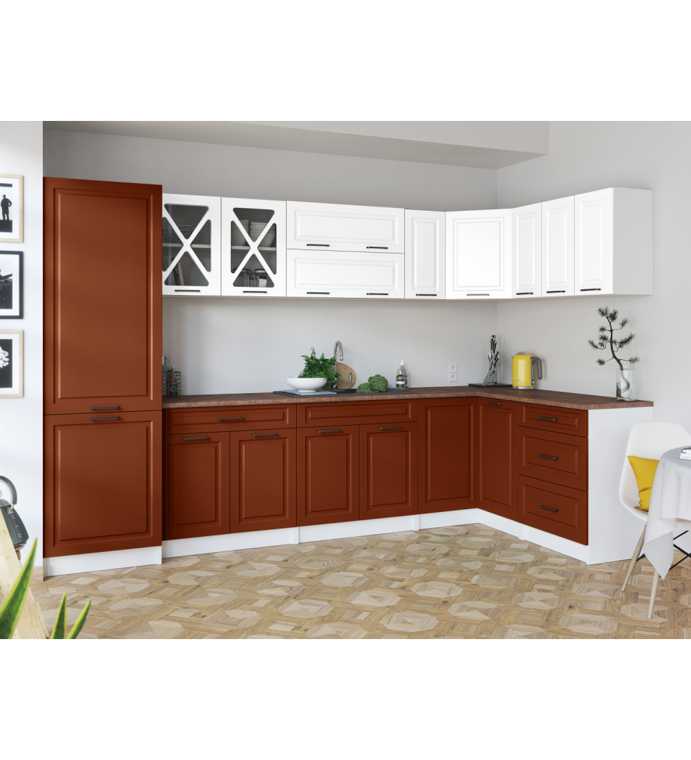 Rohová kuchyňská linka EROS SCANDI 310/150 bílá + cihlová