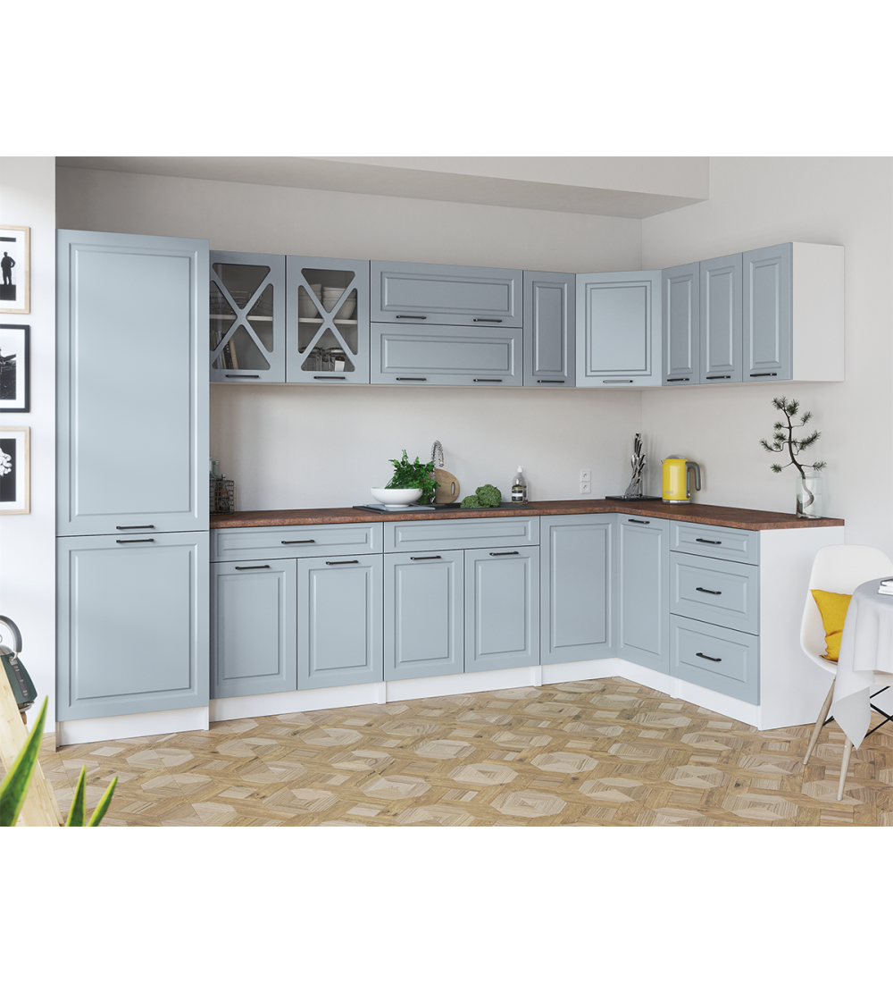 Rohová kuchyňská linka EROS SCANDI 310/150 světle modrá