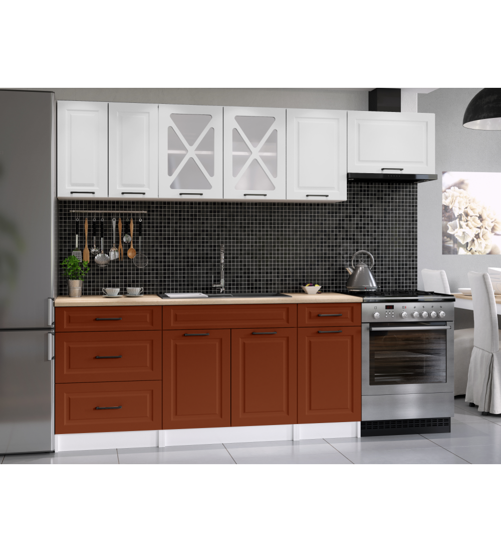 Kuchyňská linka SIMONE SCANDI 240/180 cihlová + bílá