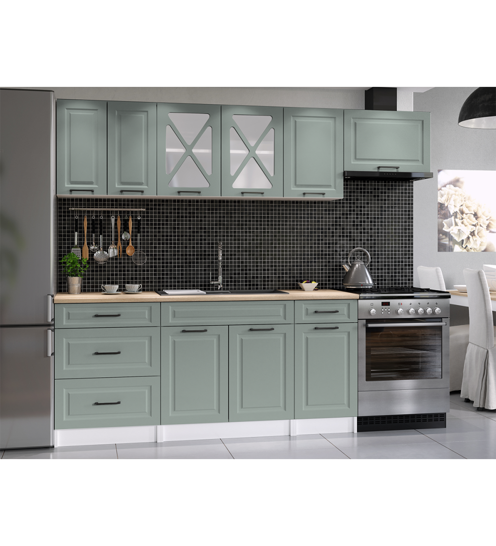 - Na dřezové skřínce není pracovní deska - možnost dokoupit pracovní desku +80cm nebo dřez, který je přes celou džezovou skřínku