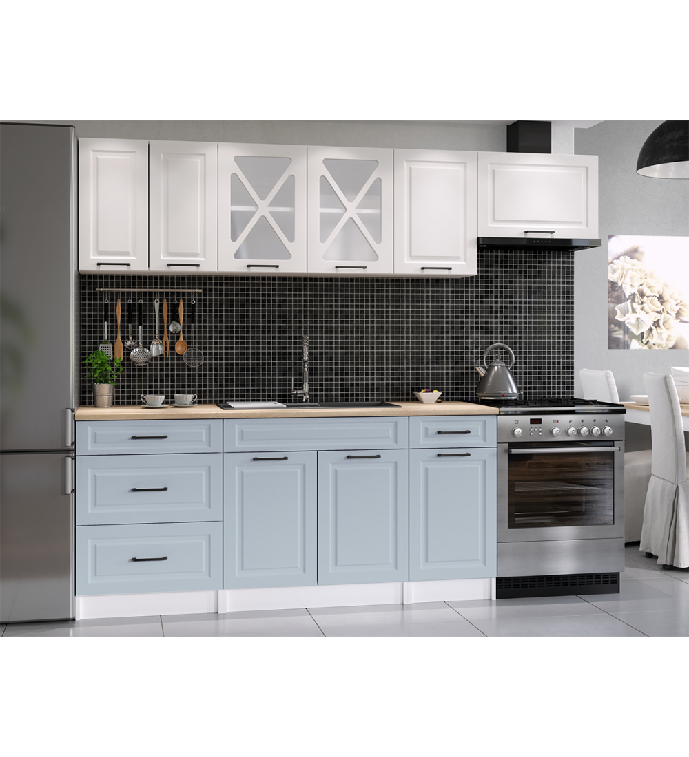 Kuchyňská linka SIMONE SCANDI 240/180 světle modrá + bílá mat