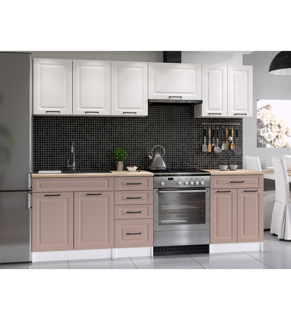 Kuchyňská linka BARBARA SCANDI 240/180 bílá + růžově béžová