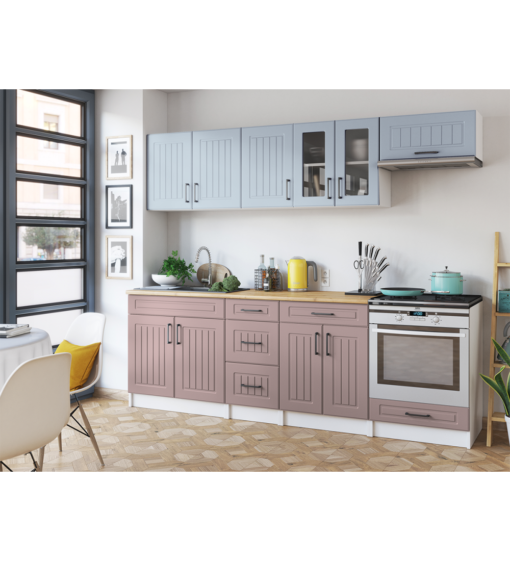 Kuchyňská linka BERTA SCANDI 240/240 světle modrá + růžově béžová