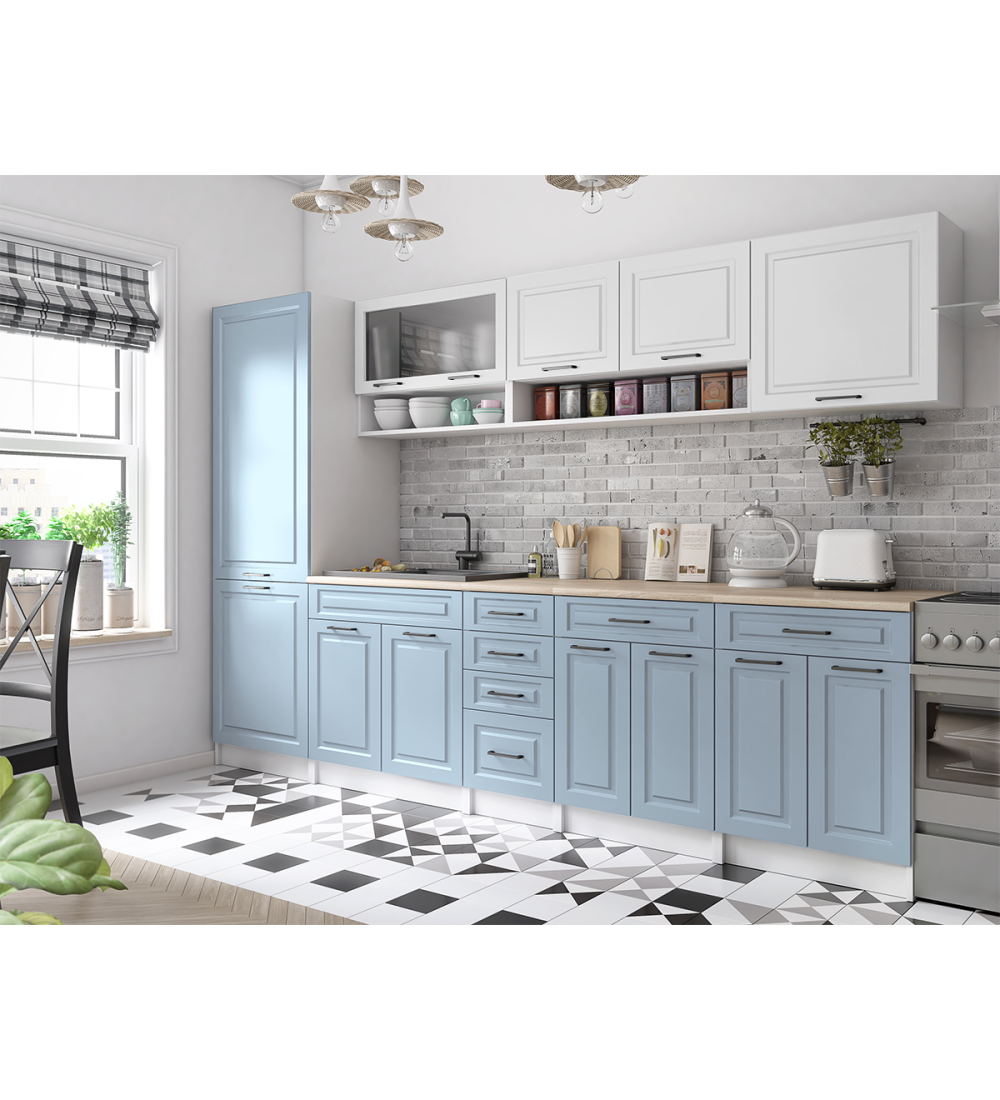 Kuchyňská linka BURO SCANDI 300cm bílá + světle modrá