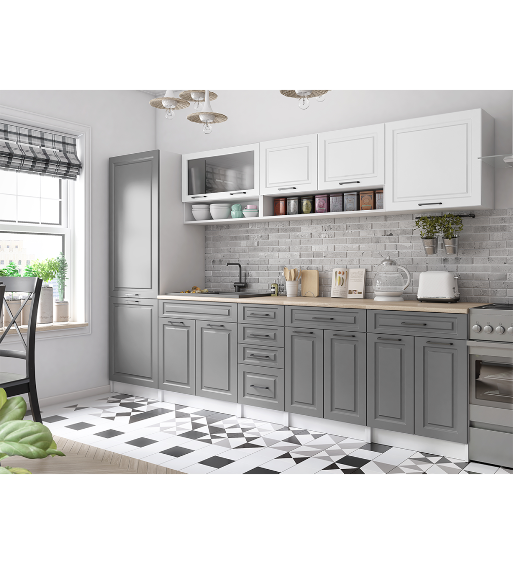 Kuchyňská linka BURO SCANDI 300cm bílá + popelavě šedá
