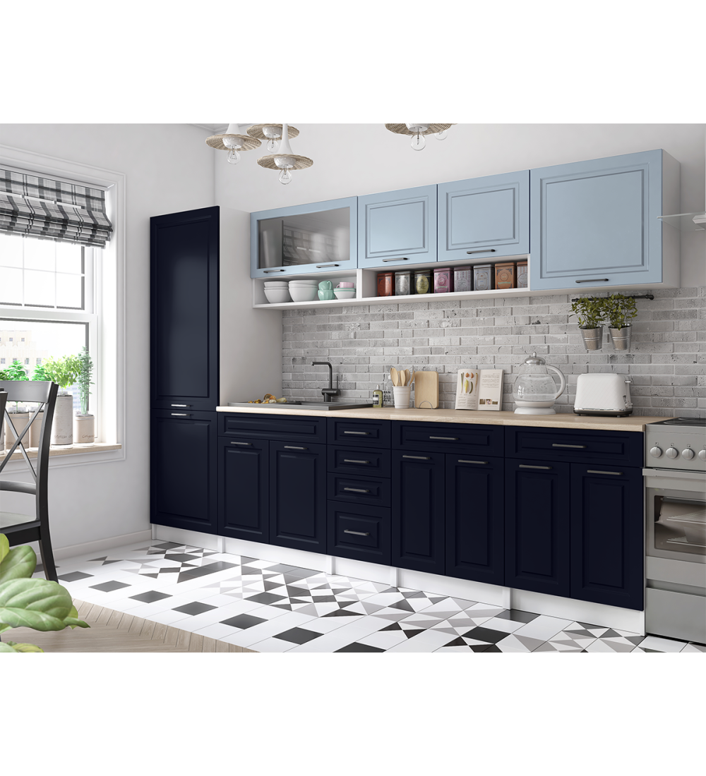 Kuchyňská linka BURO SCANDI 300cm světle modrá + námořnická modrá
