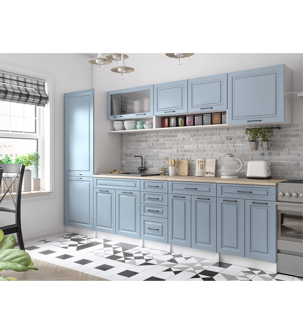Kuchyňská linka BURO SCANDI 300cm světle modrá