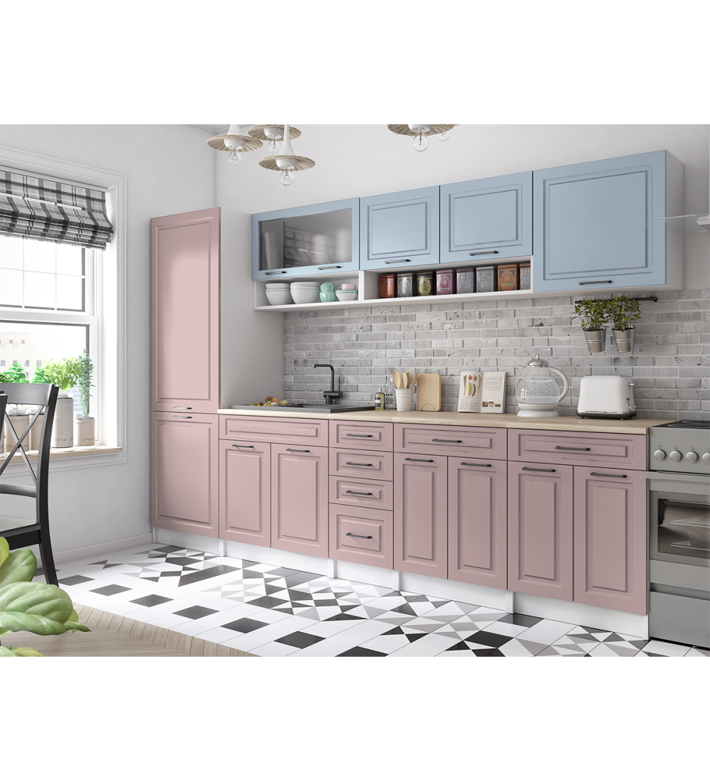 Kuchyňská linka BURO SCANDI 300cm růžově béžová + světle modrá