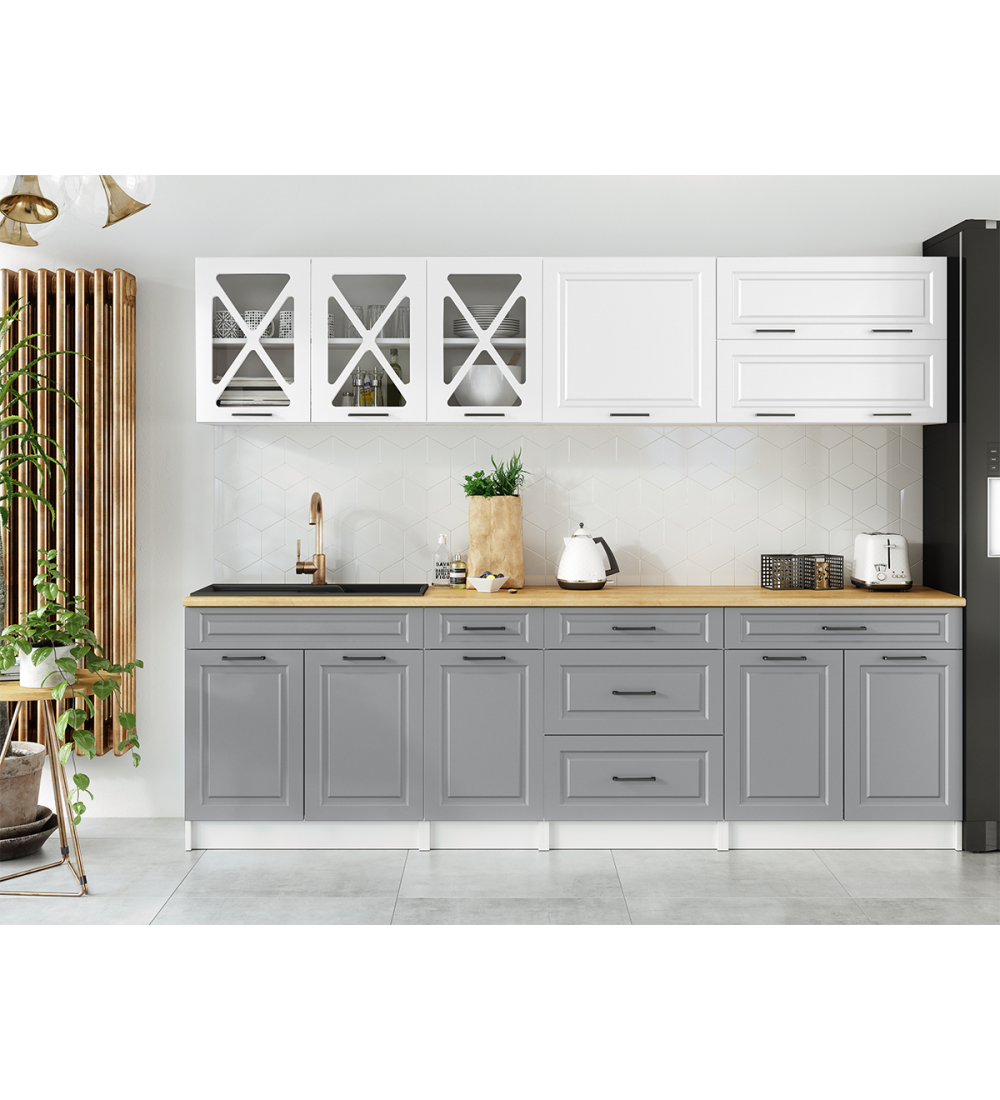 Kuchyňská linka HALINA SCANDI 260cm bílá + popelavě šedá