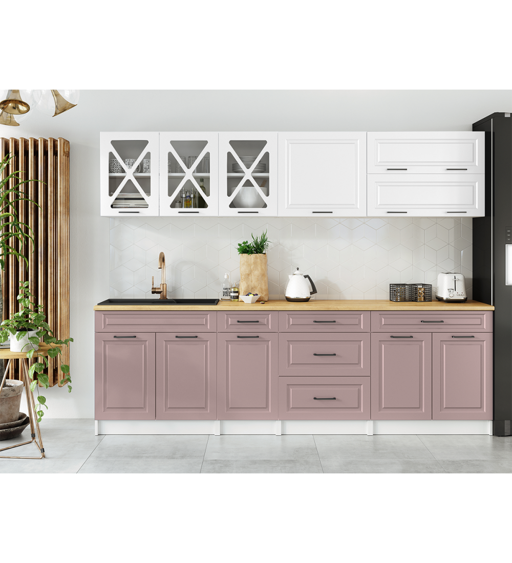 Kuchyňská linka HALINA SCANDI 260cm bílá + růžově béžová