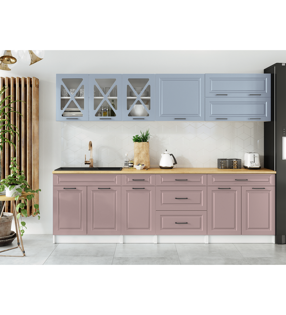 Kuchyňská linka HALINA SCANDI 260cm růžově béžová + světle modrá