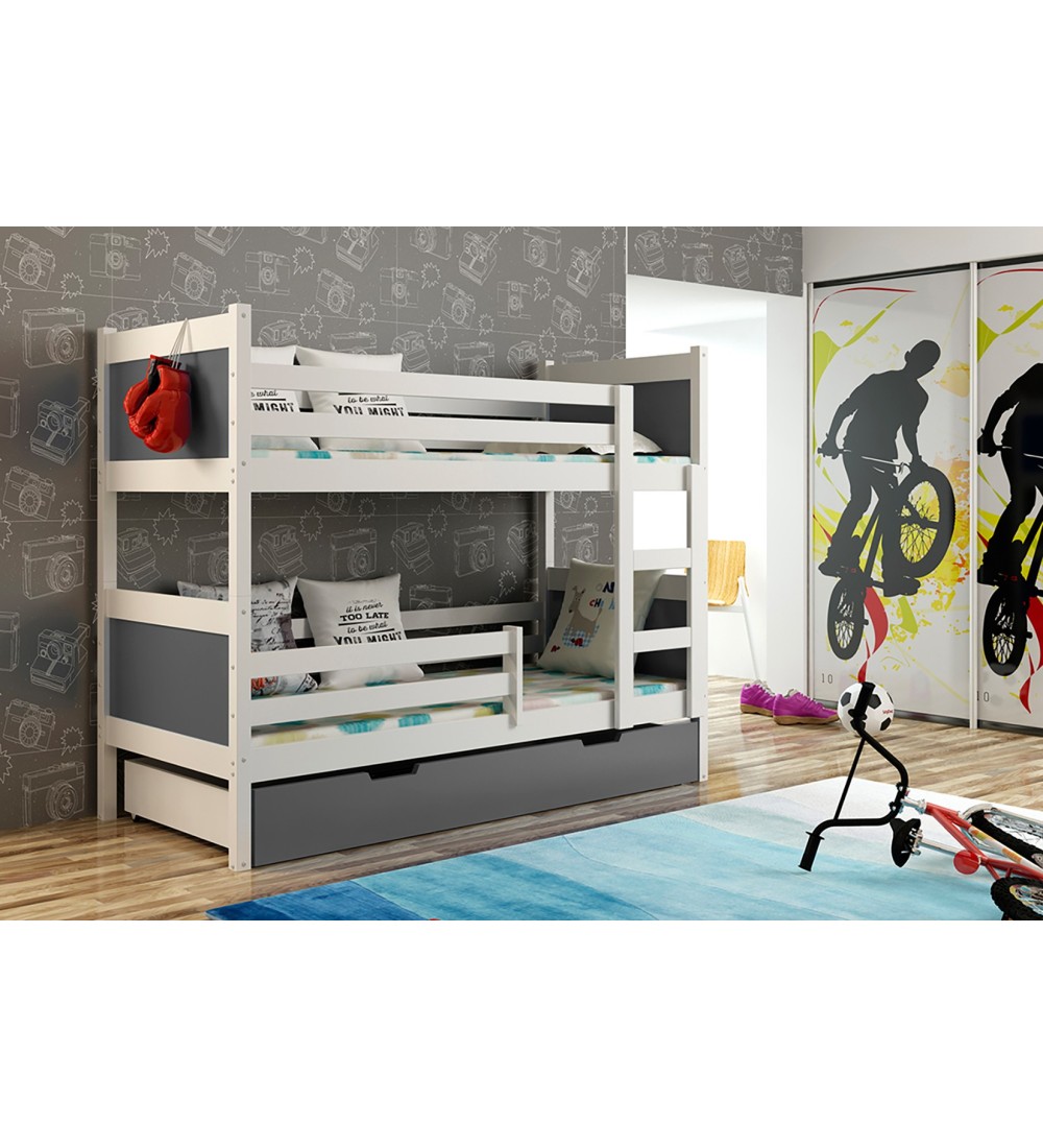 Patrová postel palanda Leon bílá šedá 185x80 cm + MATRACE