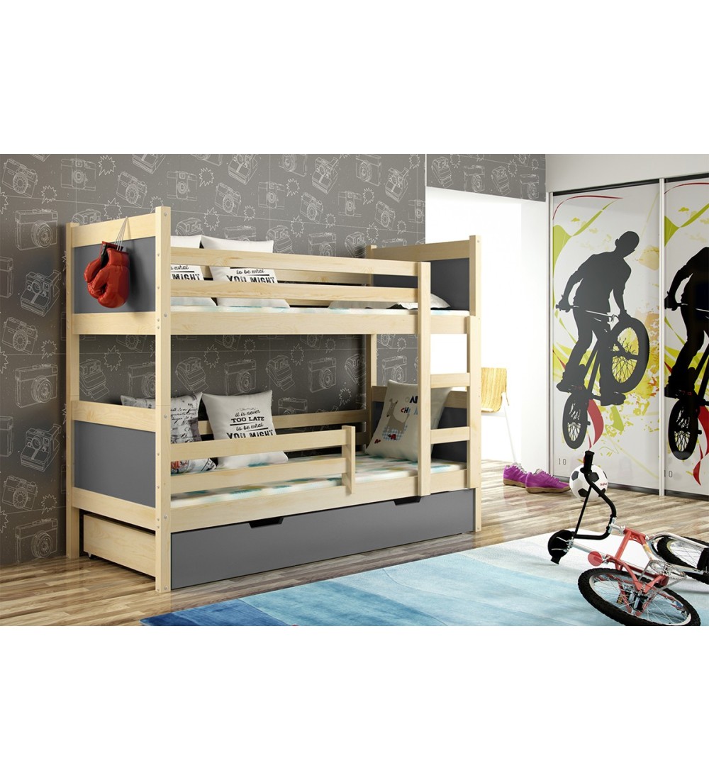 Patrová postel palanda Leon borovice šedá 185x80 cm + MATRACE