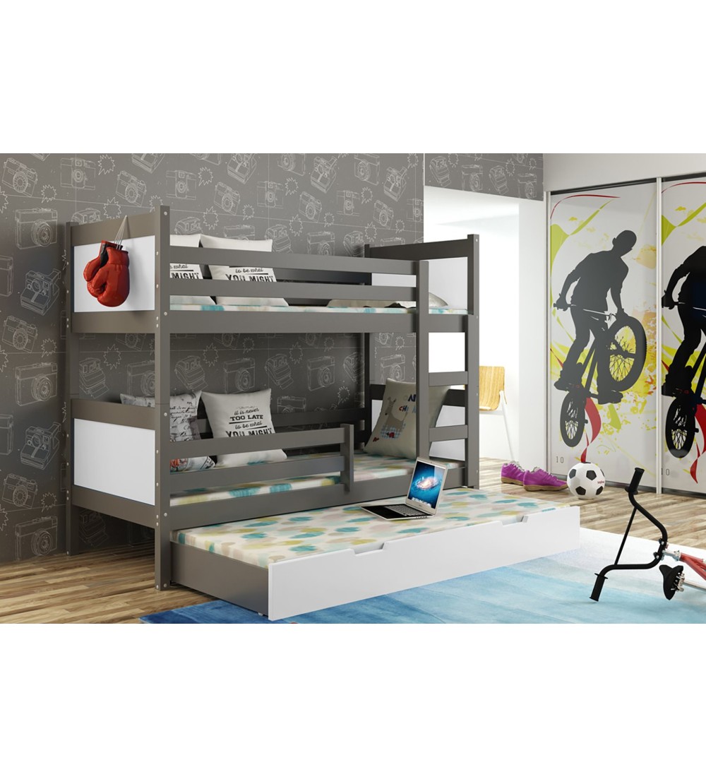 Patrová postel palanda Leon šedá bílá 3x MATRACE 185x80 cm