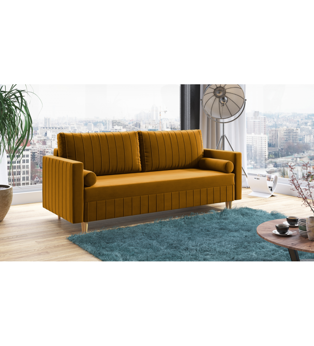 DENIO je také pohovka s funkcí spaní o ploše 140x200 cm, která jistě pojme dvě osoby. Užitečným místem pro uložení bude jistě úložný prostor na lůžkoviny umístěný v pohovce.
