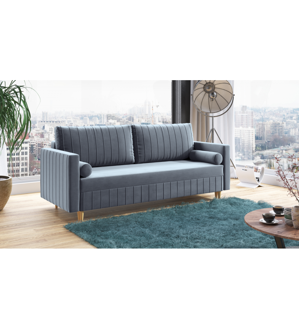 DENIO je také pohovka s funkcí spaní o ploše 140x200 cm, která jistě pojme dvě osoby. Užitečným místem pro uložení bude jistě úložný prostor na lůžkoviny umístěný v pohovce.