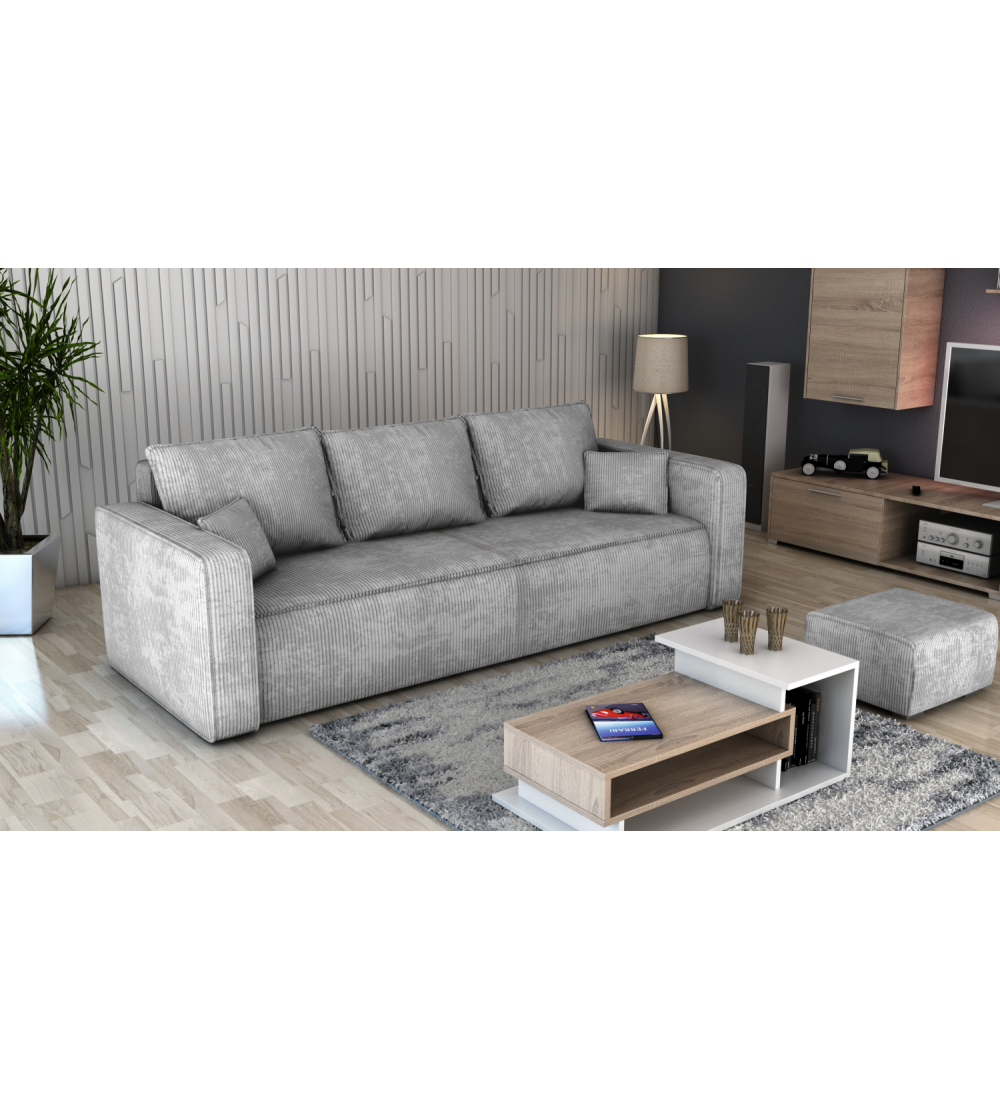 3-místná pohovka FESTO - jedinečná nabídka pro ty, kteří hledají nejen funkční kus nábytku do obývacího pokoje, ale také elegantní designový prvek interiéru. Naše pohovka byla vytvořena s ohledem na vaše pohodlí a praktičnost. FESTO není jen pohovka - je to také místo pro uložení lůžkovin, a to díky speciálně navrženému kontejneru. Díky tomuto řešení snadno udržíte v obývacím pokoji pořádek, aniž byste se museli starat o další místo na přikrývky nebo polštáře.