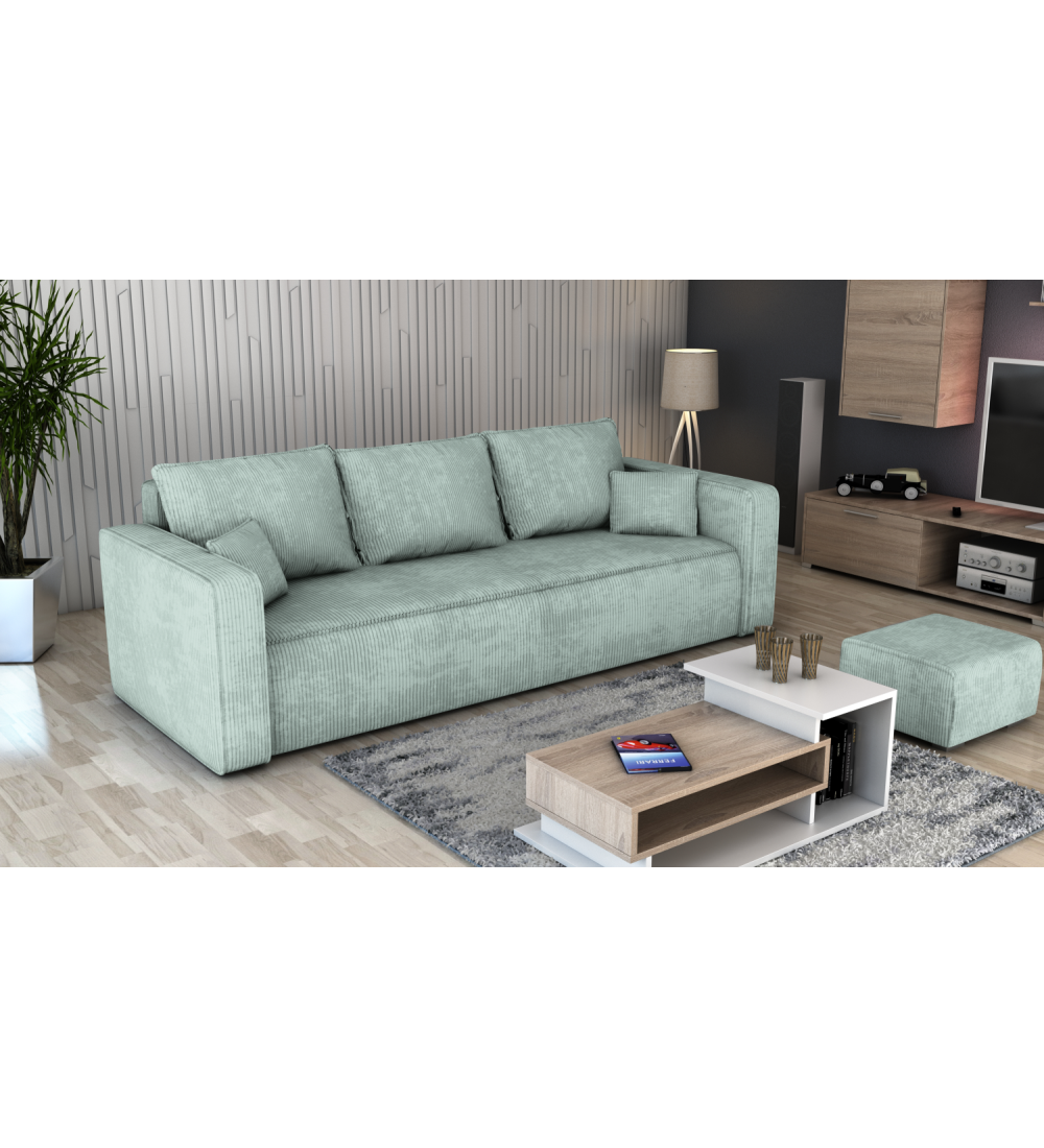 3-místná pohovka FESTO - jedinečná nabídka pro ty, kteří hledají nejen funkční kus nábytku do obývacího pokoje, ale také elegantní designový prvek interiéru. Naše pohovka byla vytvořena s ohledem na vaše pohodlí a praktičnost. FESTO není jen pohovka - je to také místo pro uložení lůžkovin, a to díky speciálně navrženému kontejneru. Díky tomuto řešení snadno udržíte v obývacím pokoji pořádek, aniž byste se museli starat o další místo na přikrývky nebo polštáře.