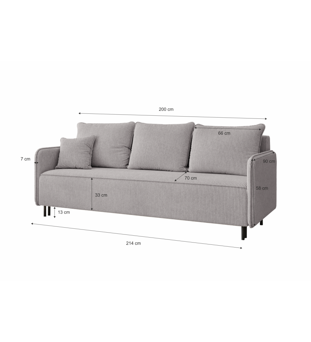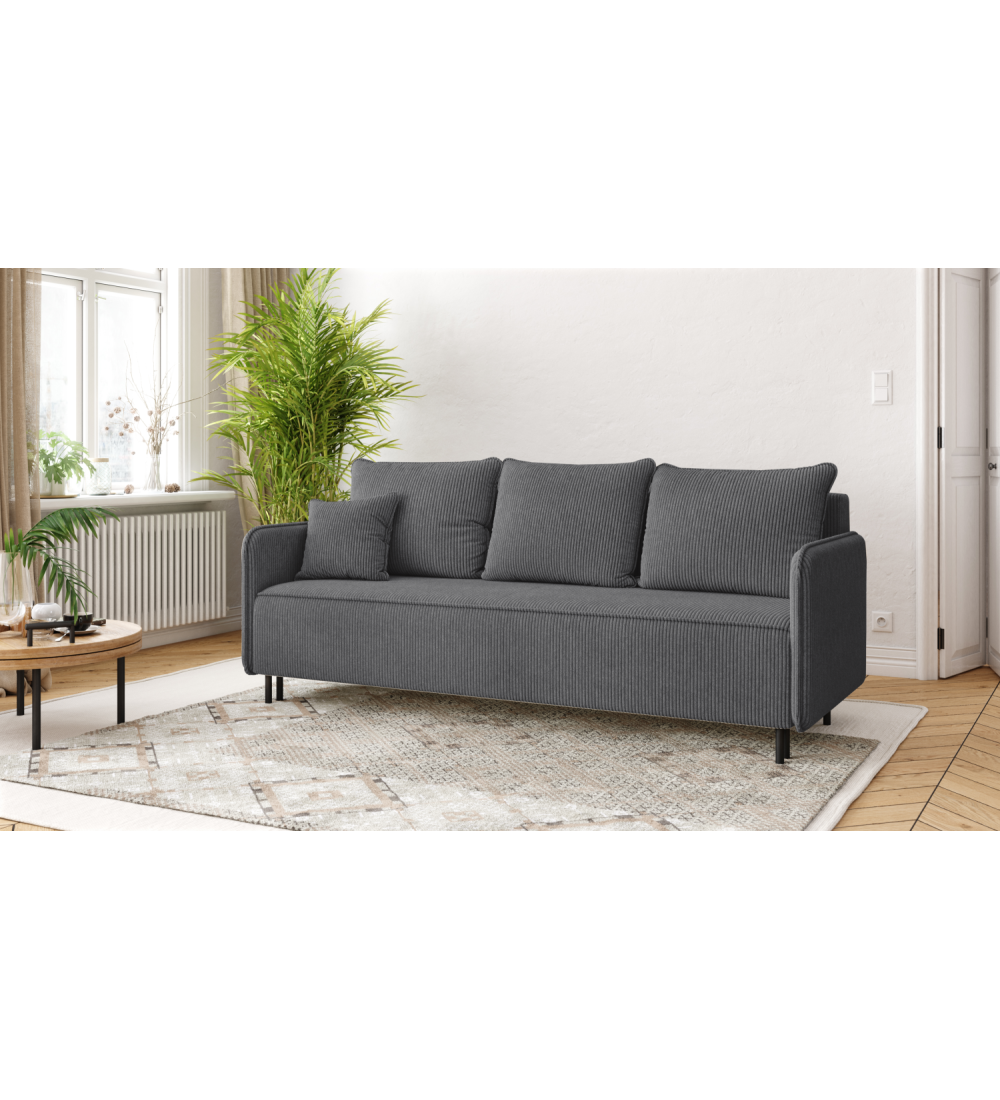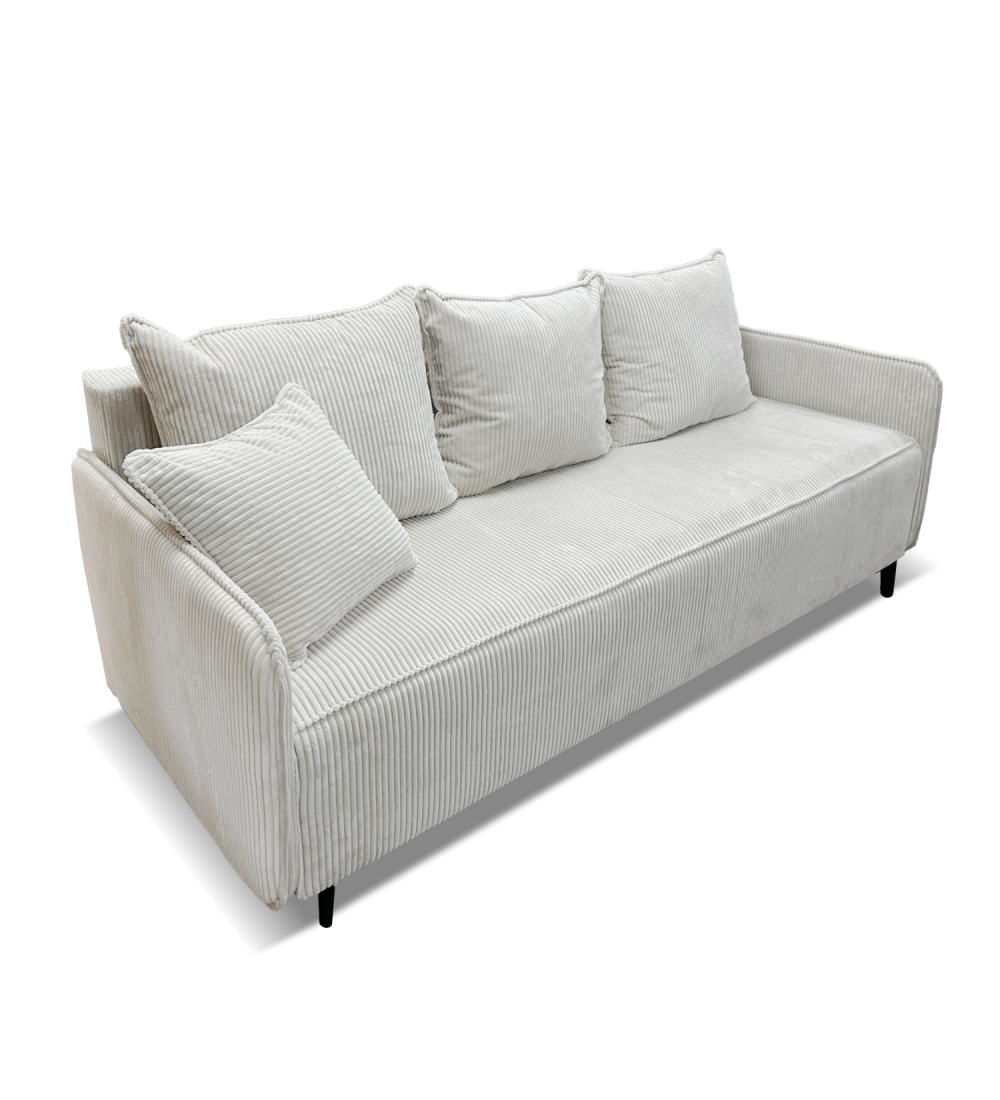 Pohovka vděčí za svůj komfort používání rozsáhlé struktuře sedáku a opěráku, založené na pružinách Bonnell a měkké a husté potahové pěně T-28. Pohovka získává dojem měkkosti a neuvěřitelné lehkosti především díky čalounění v podobě manšestrového materiálu. Jemný proužek je nejmódnější látkou této sezóny. Tato látka nejen působivě vypadá, ale je také velmi funkční. Pevný podklad a velmi vysoká odolnost proti odření zajistí, že vám nábytek z této látky bude sloužit dlouhá léta.