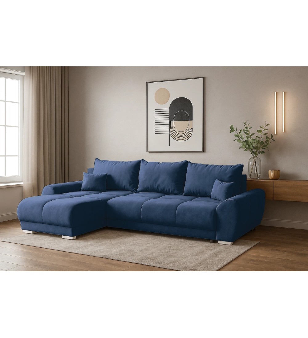 Rohová rozkládací sedačka EGON tmavě modrá
