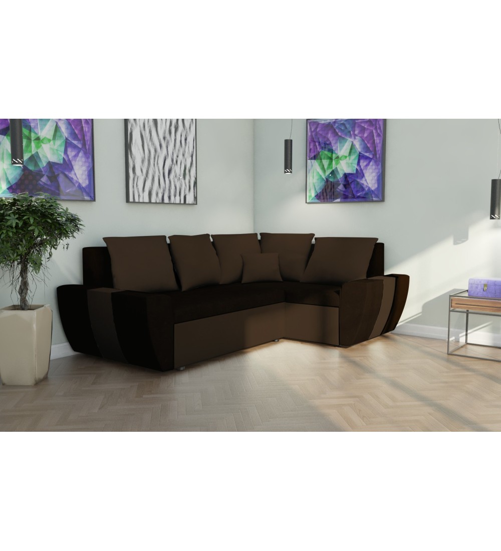 Rohová rozkládací sedačka AMEL je výbornou volbou do obývacího pokoje, protože je nejen součástí vybavení, ale především efektní dekorací interiéru. Pohodlné a moderní vám zaručí odpočinek v luxusních podmínkách. Relaxováním na něm po náročném dni získáte neuvěřitelné potěšení. Pohodlí v koutě má na svědomí použitá kvalitní čalounická pěna.