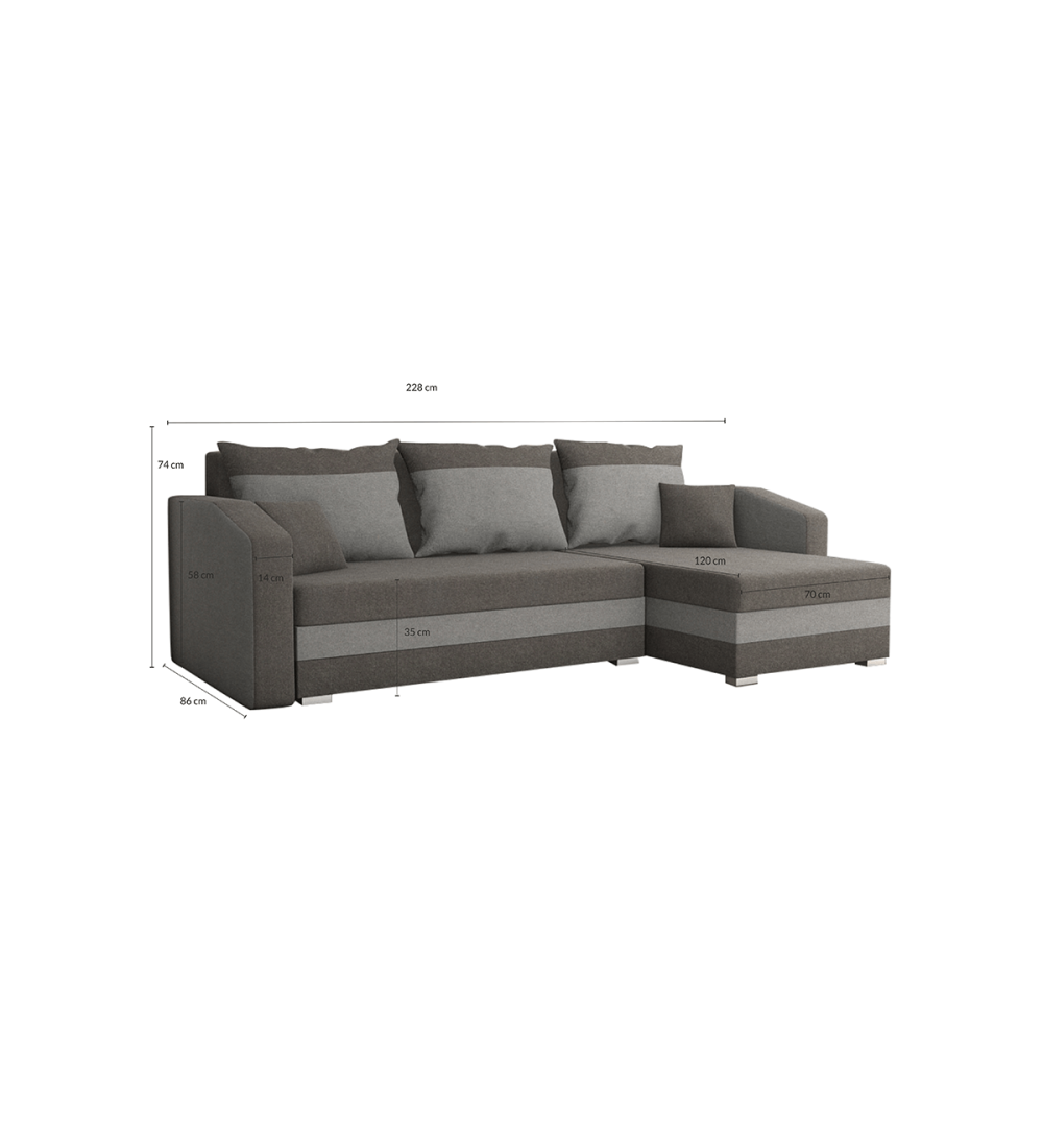 Rohová rozkládací sedačka FALCO je výbornou volbou do obývacího pokoje, neboť je nejen vybavením, ale především efektní dekorací interiéru. Pohodlné a moderní vám zaručí relaxaci v luxusních podmínkách. Když si na něm po náročném dni odpočinete, získáte neuvěřitelné potěšení. Pohodlí v koutě má na svědomí použití kvalitní čalounické pěny.