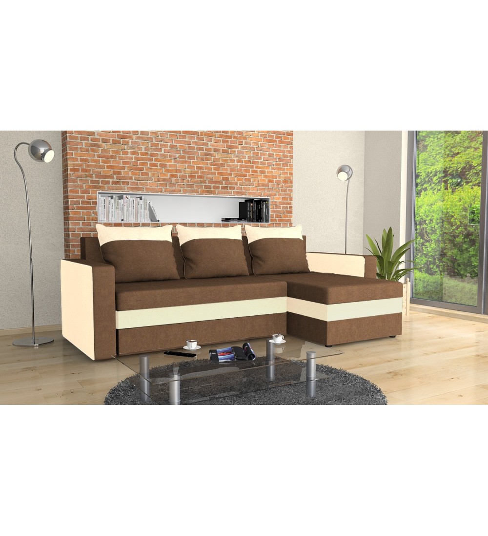 Rohová rozkládací sedačka EMA je výbornou volbou do obývacího pokoje, protože je nejen součástí vybavení, ale především efektní dekorací interiéru. Pohodlné a moderní vám zaručí odpočinek v luxusních podmínkách. Relaxováním na něm po náročném dni získáte neuvěřitelné potěšení. Pohodlí v koutě má na svědomí použitá kvalitní čalounická pěna.