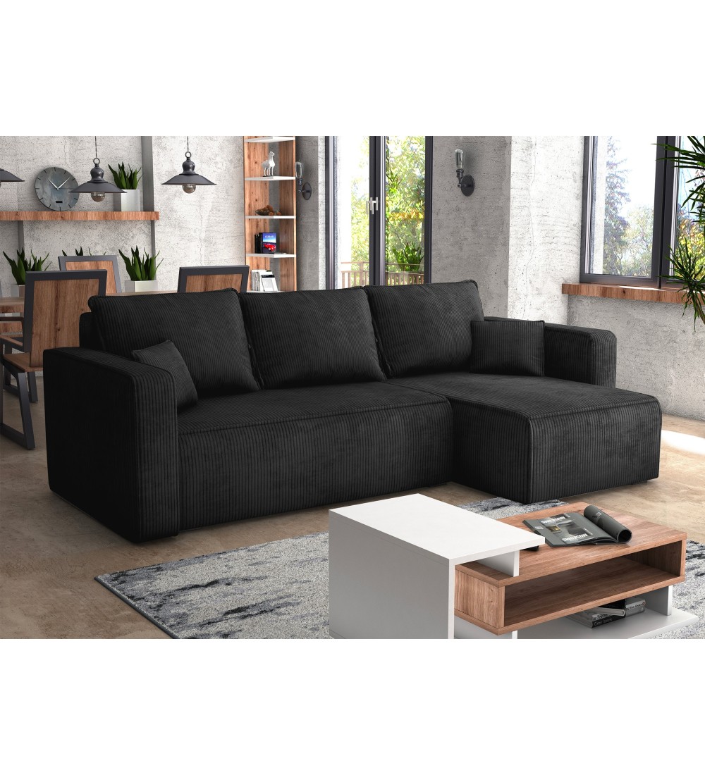 Rohová rozkládací sedačka FORESTO černá - manšestrová látka