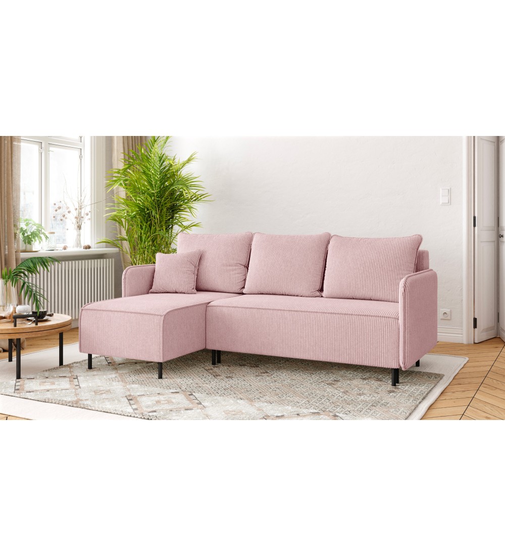 Rohová rozkládací sedačka VENOMO růžová - manšestr