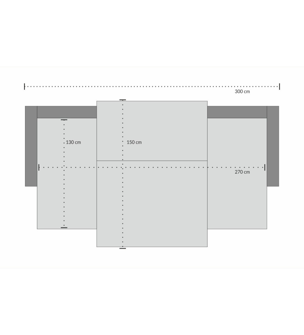- Rozkládací rohová rozkládací sedačka o rozměru 150 x 270 cm