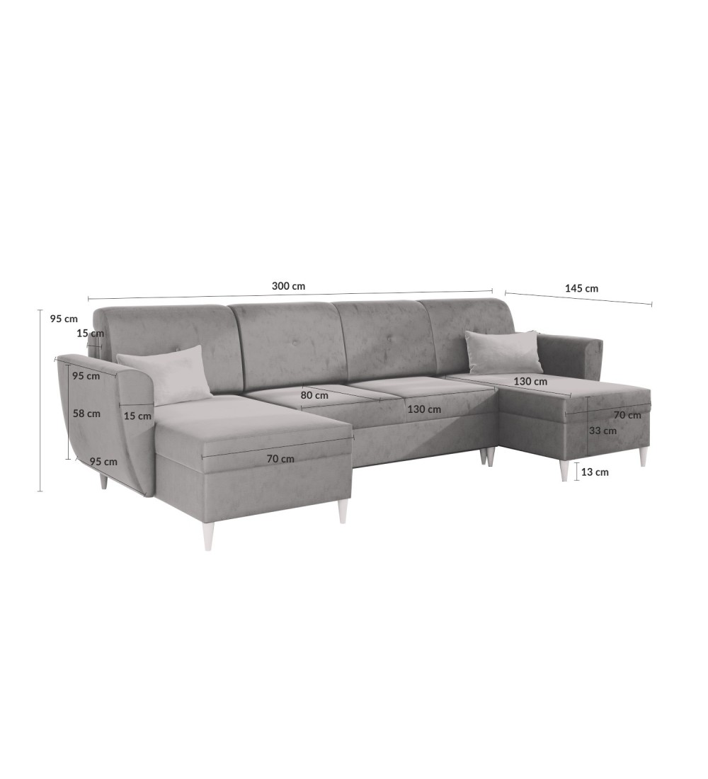 FLOPY je také rohová rozkládací pohovka o ploše 150 x 270 cm, na kterou se jistě vejdou minimálně dvě osoby. A užitečným místem pro uložení budou jistě úložné prostory na lůžkoviny umístěné v sedačce.